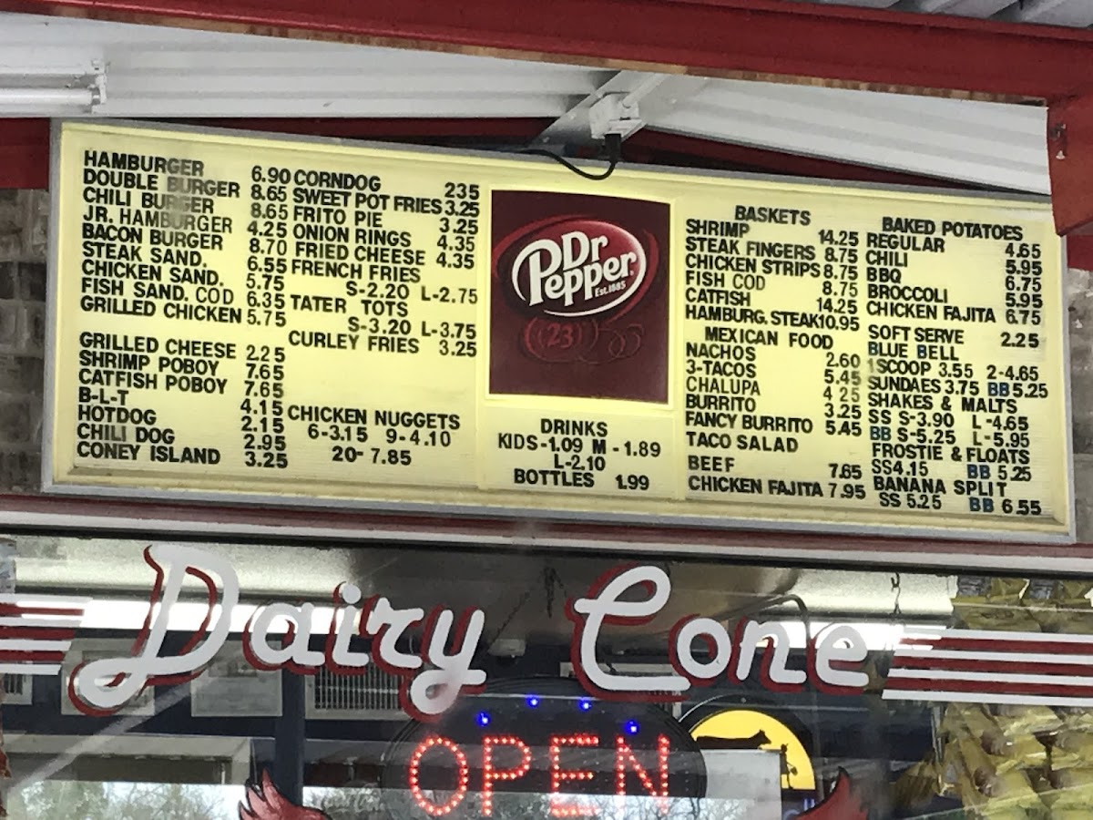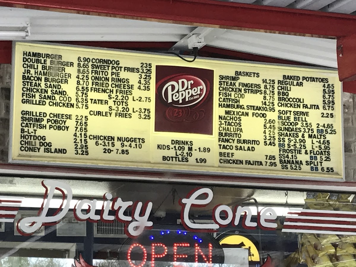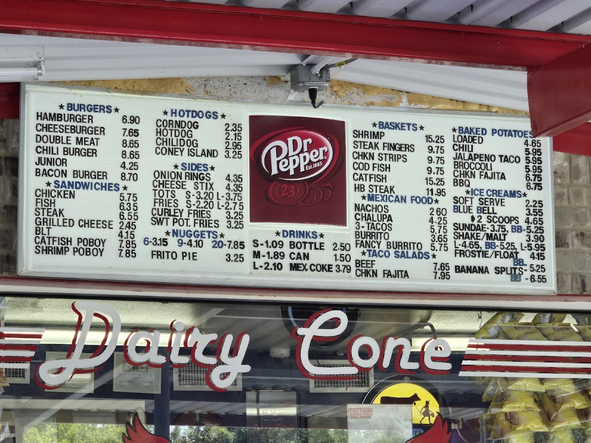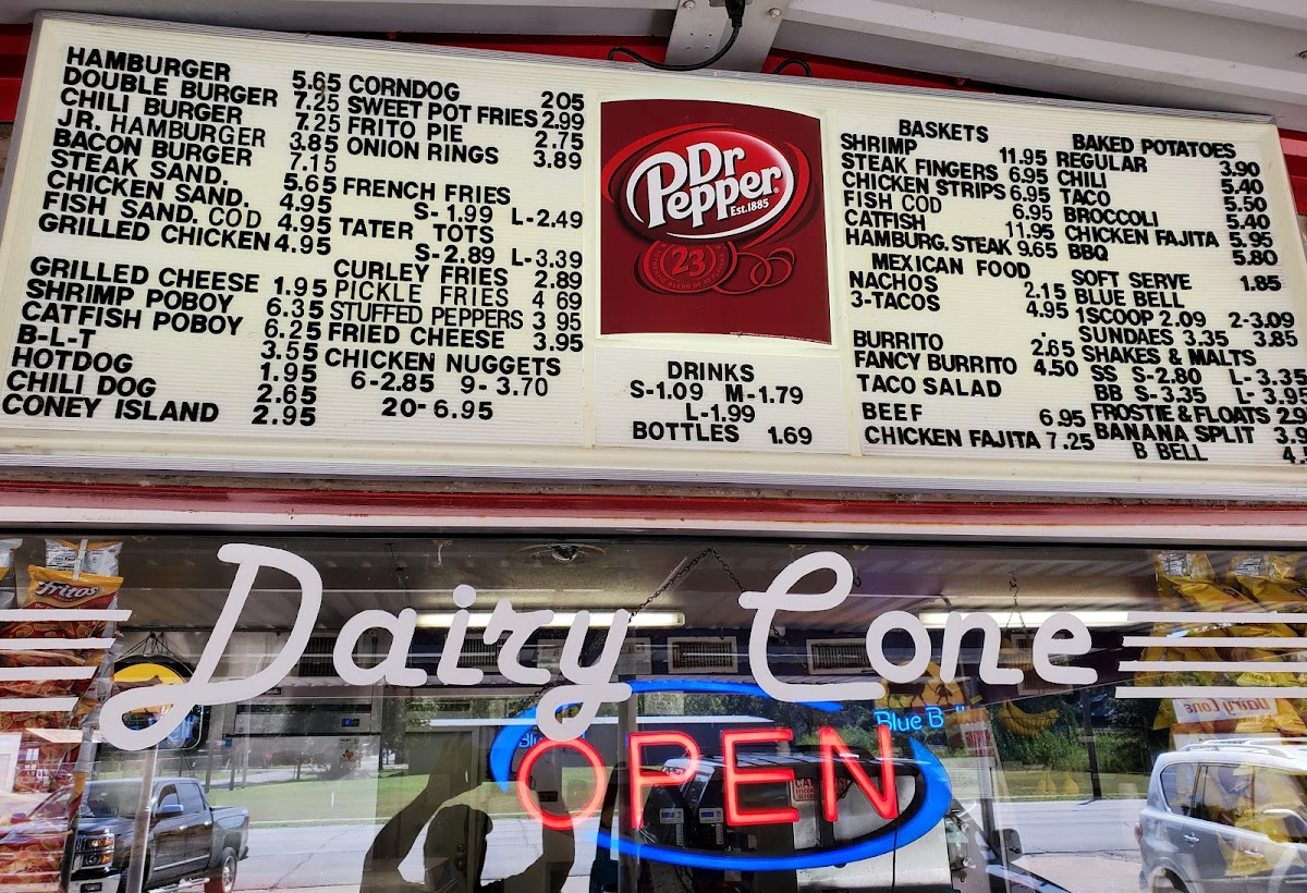 Dairy Cone, located at 836 Walnut St, Columbus, TX, is a charming throwback to the 1970s, welcoming diners with nostalgic dishes and exceptional service. With its vibrant drive-up atmosphere, the menu showcases a delightful array of comfort foods, including their famous Frito pie, juicy burgers, and thick, creamy soft-serve ice cream. The friendly staff ensures each order is prepared with care and precision, making every visit a memorable one. Customers rave about the crispy onion rings and robust flavors of the chili baked potato. Dairy Cone is more than just a restaurant; it’s a beloved local gem that encapsulates the joy of classic American dining.
